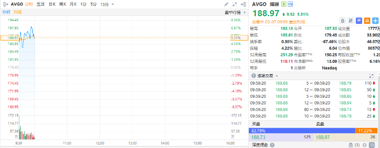 博通大漲超5%,第一財季業績超預期,AI芯片需求展望積極。