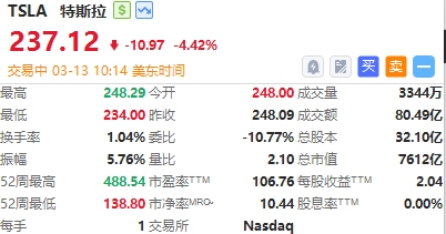 特斯拉 $TSLA 跌超4%,報237.12美元。消息面上,摩根大通將特斯拉的目標價從135美元下調至120美元,並預計特斯拉今年將交付約178萬輛汽車,比2024年下降約1%。