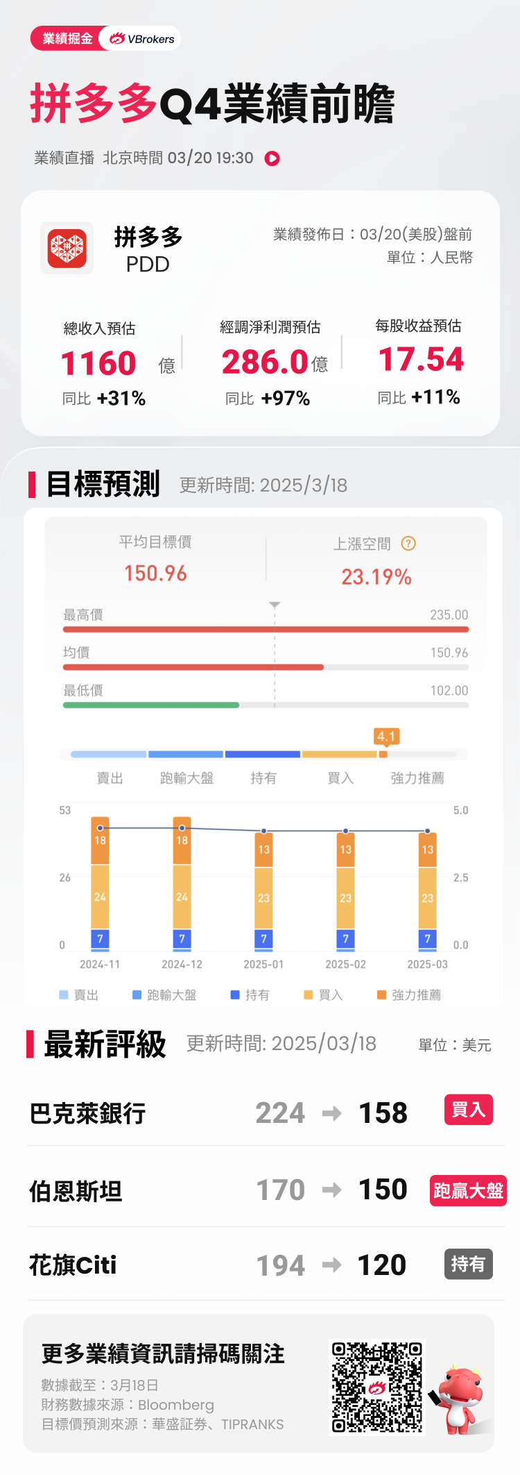 拼多多 $PDD 將於本週四(3月20日)美股盤前發佈2024年第四季度業績報告。