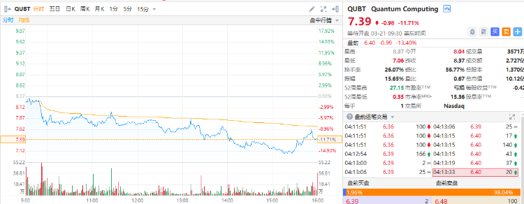 量子計算概念股盤前延續跌勢,QUBT跌超13%,LAES跌超7%,QBTS跌超5%,RGTI跌超4%。在週四的英偉達年度軟件開發者大會上,黃仁勳坦言不知道有量子計算公司已經上市。