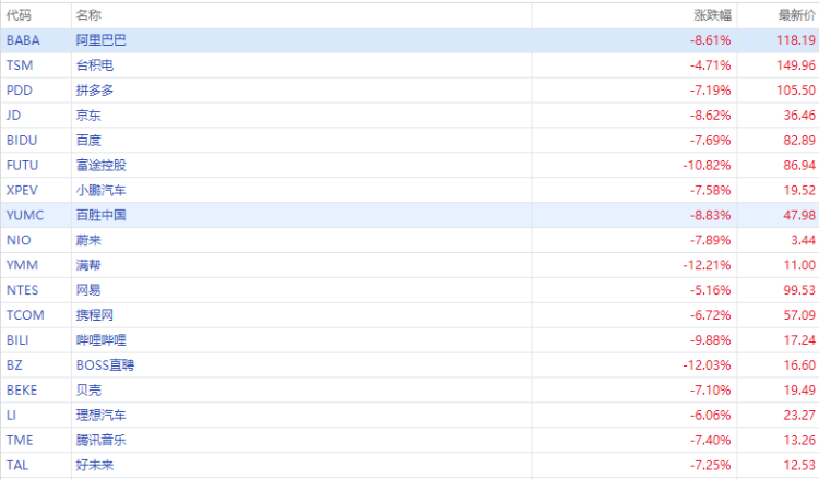 華盛資訊4月4日消息,納斯達克中國金龍指數跌超7%。嗶哩嗶哩跌超9%,阿里巴巴、京東跌超8%,拼多多、小鵬汽車、百度、蔚來跌超7%。