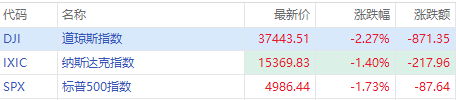 標普500指數目前轉而下跌1.73%,道指轉而下跌871點跌幅2.27%,納指跌1.4%。