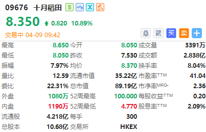 華盛資訊4月9日訊,農業股持續大漲!十月稻田漲超10%,周內累漲超36%;德康農牧漲近6%,第一拖拉機股份漲超3%。