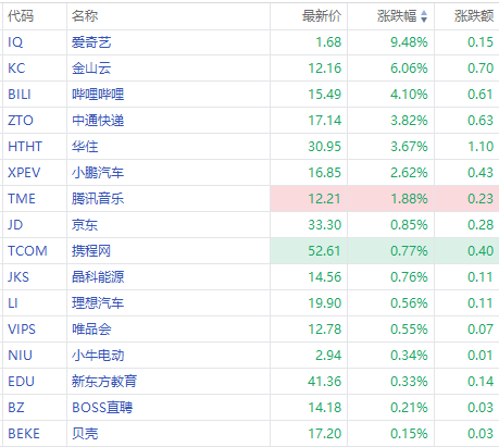 其中,愛奇藝漲超9%,金山雲漲超6%,嗶哩嗶哩漲超4%,小鵬汽車漲超2%,騰訊音樂漲超1%,理想汽車、貝殼跟漲。 $YINN 漲超8%。