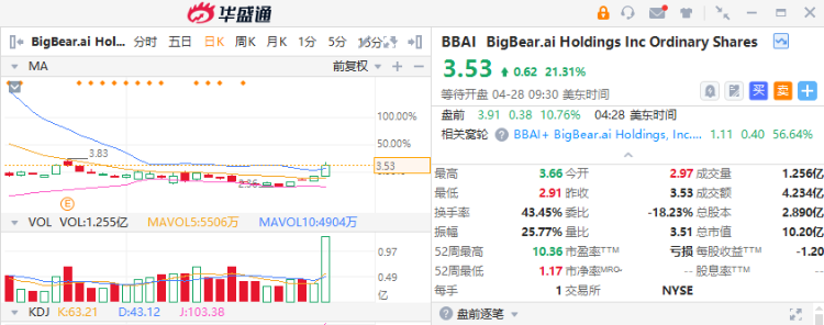 AI軟件股走高,BBAI大漲超11%,公司宣佈將爲美國海軍供應商Austal USA提供人工智能技術。