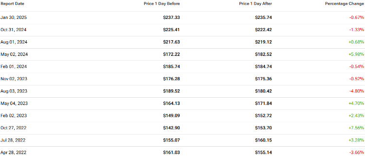 回顧蘋果過去12個財季表現,盈利公佈後的股價變動平均爲±3.01%,最大漲幅爲+7.56%,最大跌幅爲-4.8%。