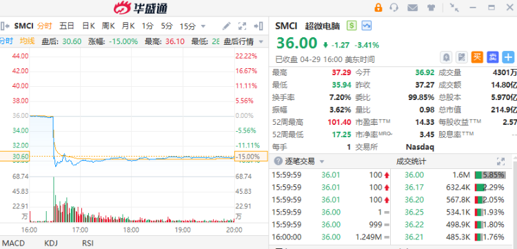 超微電腦第三財季調整後EPS初步數據爲0.29-0.31美元,分析師預期0.53美元。將第三季營收預估調降至45億-46億美元,低於先前預估的50億-60億美元。超微電腦盤後跌超15%。