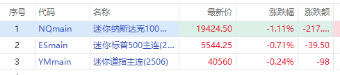 美股三大股指期貨週二盤前跌勢擴大,標普500主連 $ESmain 跌0.71%,道指主連 $YMmain 跌0.24%,納指主連 $NQmain 跌1.11%。