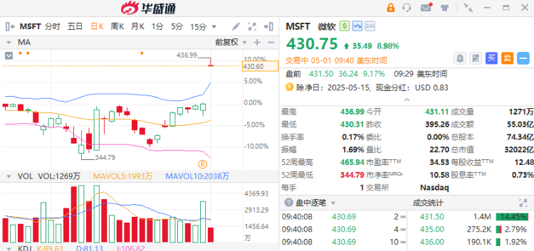 華盛資訊5月1日消息,美股三大指數高開震盪,微軟大漲超9%, $META 漲超6%,兩者均公佈超預期季報,