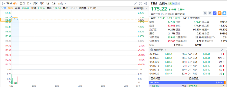 臺積電盤前漲近2%,4月營收同比增48%並創新高。