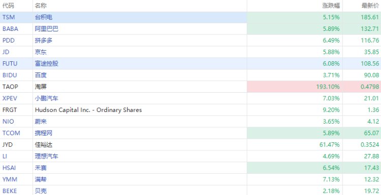 華盛資訊5月12日消息,熱門中概股齊升,拼多多、小鵬汽車、嗶哩嗶哩漲超6%,阿里巴巴、京東、攜程網漲超5%。消息面上,中美日內瓦經貿會談公佈重磅聯合聲明,雙方保留加徵剩餘10%關稅,取消或暫停其它加徵關稅。