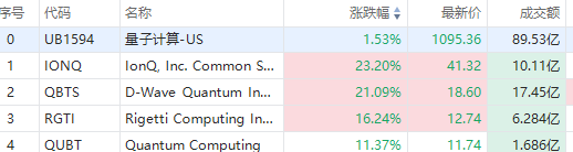 華盛資訊5月22日消息,量子計算概念漲勢持續擴大, $IONQ 漲超22%, $QBTS 再度飆漲20%, $RGTI 漲超16%。