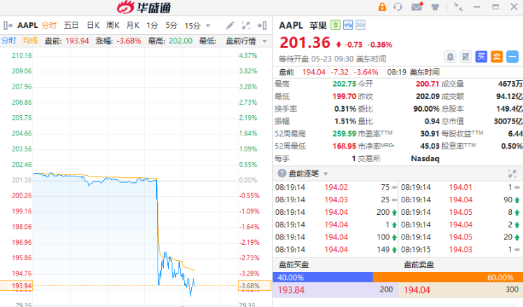 截至發稿,納指期貨 $NQmain 跌1.96%,標普期貨 $ESmain 跌1.58%,蘋果盤前跌超3%,特朗普威脅對非美國本土生產的iPhone徵收25%關稅。