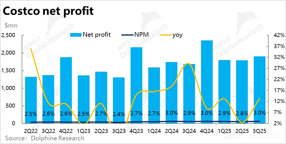 不過從商品成本和經營費用確實呈現擴張的情況來看,關稅影響下,公司的商品採購成本和門店經營等費用確實在增加,再通脹的壓力並非虛言,也使得公司的利潤增長並不能大幅跑超收入增長。但憑藉公司一直以來在供應鏈上的深耕,此次也驗證了公司有能力將額外成本向消費者和上游供應商傳導的能力。
