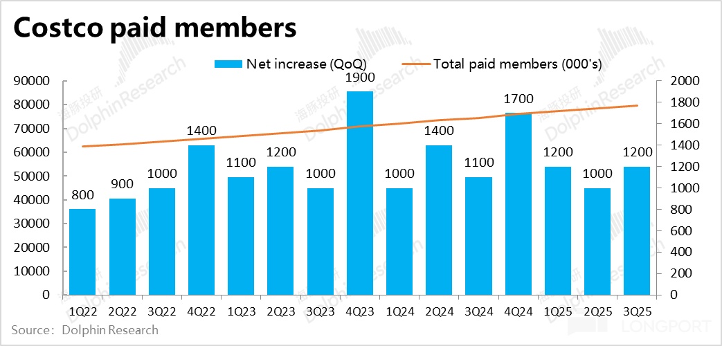 可以看到,排除匯率因素和油價影響後,Costco 在全球各地的同店銷售增長都仍保持高個位數,似乎絲毫未收到上述三個 “宏觀負面因素” 的影響,再度驗證公司用戶的忠誠度,和其服務於中產及以上羣體天然更抗風險的消費能力。
