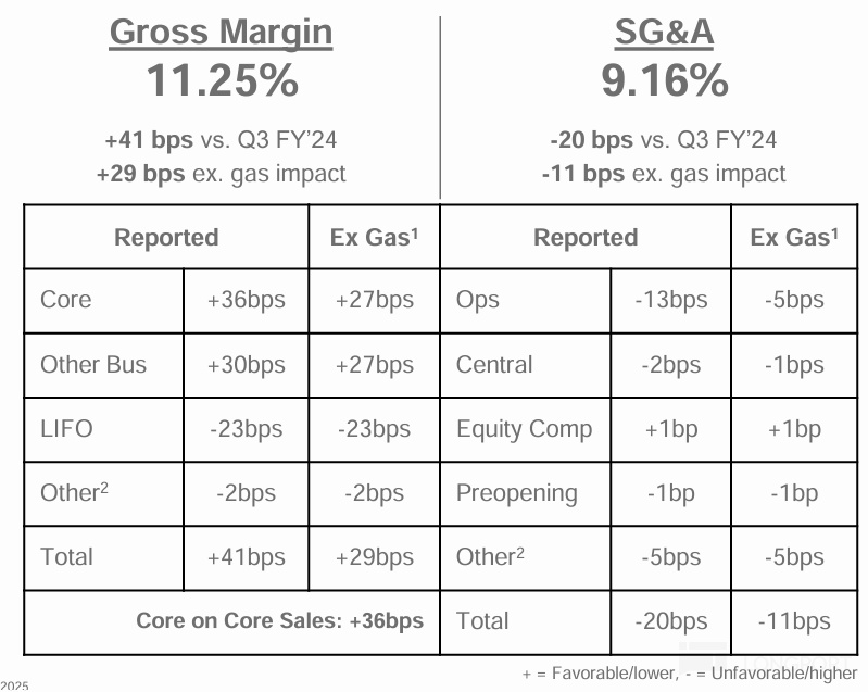 具體來看,本季度商品銷售毛利率同比顯著提升了 41bps,使得商品毛利潤額$69.7 億,比預期多出 2.3 億,表現不俗。