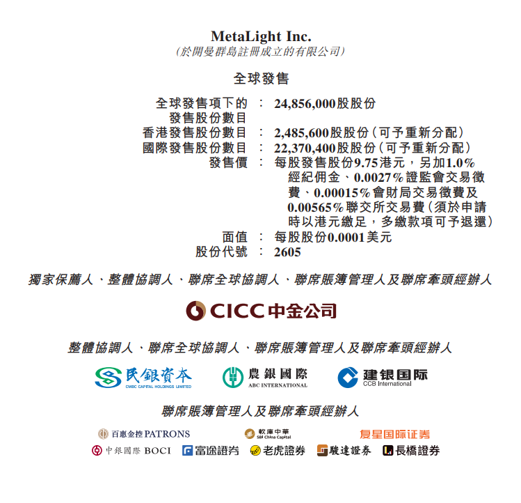 華盛資訊5月22日消息,METALIGHT $02605.HK 發佈公今起招股。