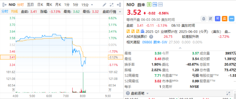 蔚來 $NIO 2025年Q1營收120.35億元,同比增長21.5%,環比下降38.9%,市場預期123.5億元;淨虧損67.5億元,同比擴大30.2%;經調整淨虧損62.79億元,同比擴大28.1%。展望未來,蔚來Q2交付指引7.2萬至7.5萬臺,二季度交付預計環比大增71%-78%。美股盤前跌超3%。