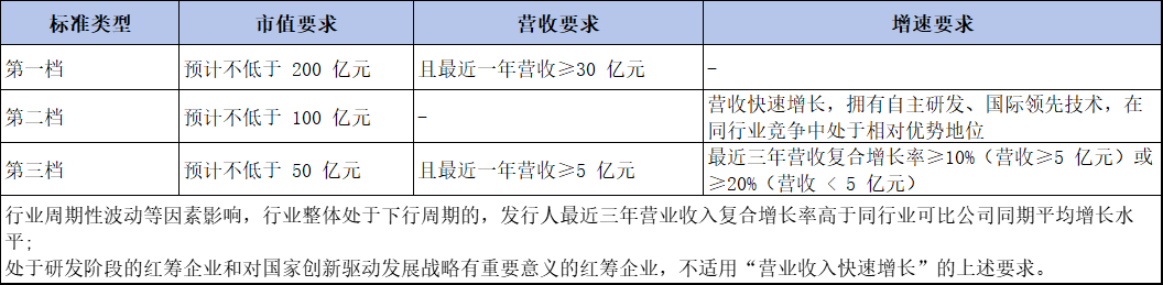 2. 未境外上市紅籌企業上市標準,至少需滿足以下條件之一: