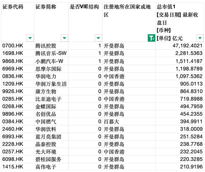 據21世紀經濟報統計,符合"大灣區註冊+紅籌架構+港主板上市"三重條件,且滿足市值/技術標準的企業如下: