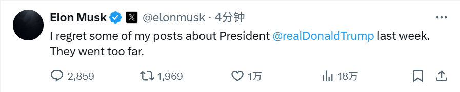 馬斯克主動認錯!特朗普:不急着與馬斯克修復關係