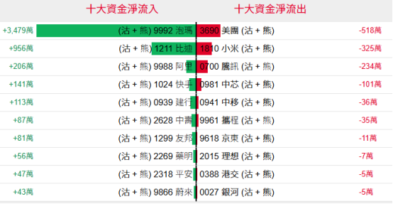淡倉(認沽證及熊證)方面,近5日合計,泡泡馬特相關淡倉錄得約3479萬港元資金淨流入,比亞迪、阿里巴巴、快手分別約956萬、206萬及141萬港元資金淨流入部署;美團、小米集團、騰訊控股等相關淡倉則分別約518萬、325萬、234萬港元資金淨流出。