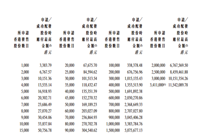經扣除包銷佣金及費用以及公司就全球發售已付及應付的其他估計發售開支後,假設超額配股權並無獲行使,公司估計將收取的全球發售所得款項淨額約爲17.18億港元;或倘超額配股權獲悉數行使,所得款項淨額則約爲19.89億港元: