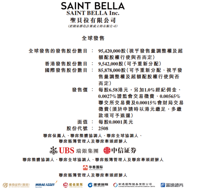 - 發售價格:每股發行價6.58港元,每手500股,一手入場費3323.18港元