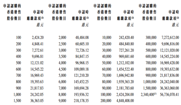 - 發售價格:每股發行價24港元,每手100股,一手入場費2424.20港元