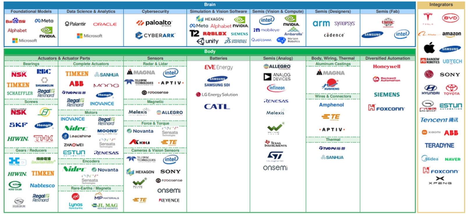 摩根士丹利在近期更新的“人形機器人100”(Humanoid 100)股票清單中,將遊戲開發商和網絡安全企業加入了名單。作爲背景,大摩將入選這份清單的邏輯敘述爲“實體人工智能的關鍵賦能者”。在最新的調整中,由大摩分析師Adam Jonas領銜的團隊,將Unity、Roblox、Take-Two、CyberArk、派拓網絡納入了清單。