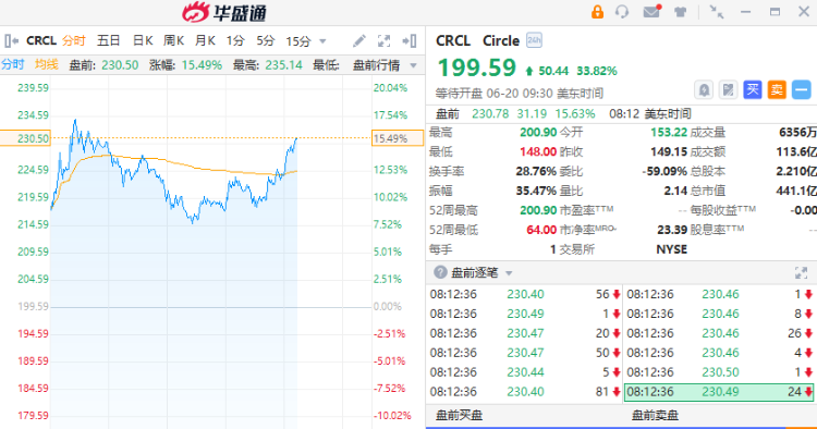 穩定幣第一股Circle升15%,自6月5日上市以來,其股價累計上升超543%,從31美元發行價飆升至199.59美元收市價。近日,美國參議院在美國以68-30票數通過GENIUS法案,爲美元支持的穩定幣建立聯邦監管框架,推動其向主流支付領域擴展。