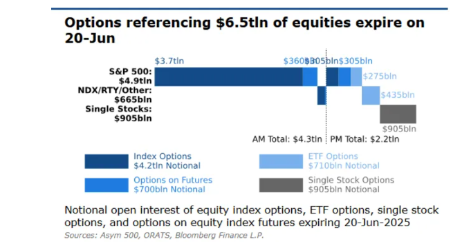 投資者正爲週五到期的名義價值達6.5萬億美元的美股期權做準備,此事件可能會使股市波動幅度加大,超過近幾周來相對溫和的變動。每個季度,一批不同的交易所交易衍生品合約都會在同一天到期,市場觀察家有時稱之爲“三巫日”事件。