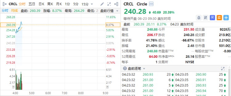 穩定幣第一股Circle續漲超8%,上市以來已累漲近700%。