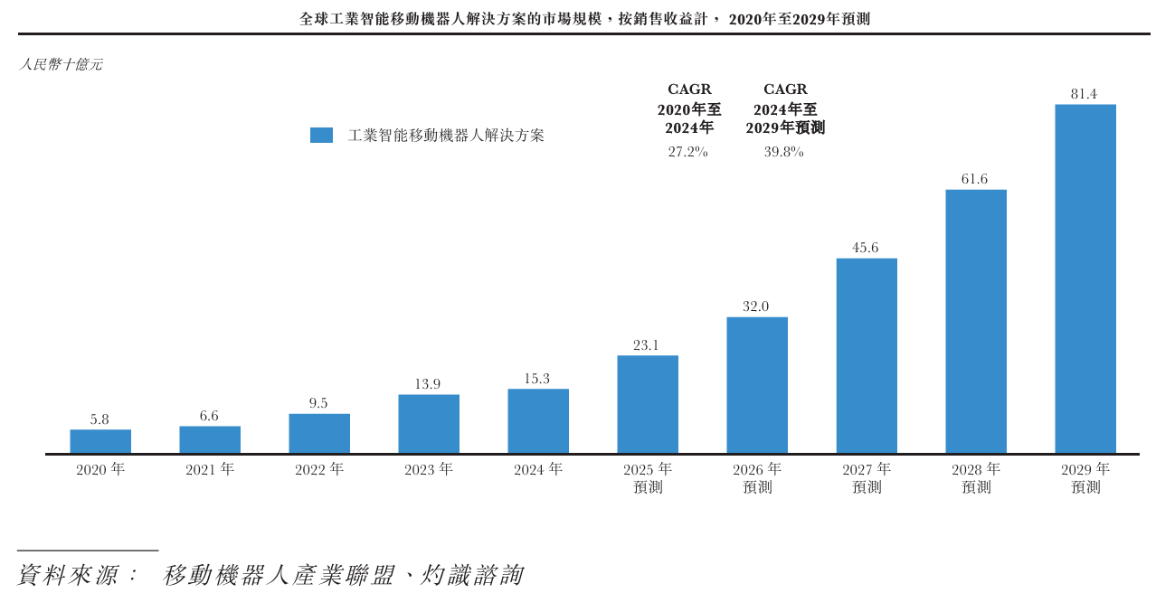 根據灼識諮詢的資料,截至2024年12月31日的年度,按銷量計算,集團爲全球第五大工業智能移動機器人解決方案提供商及第四大工業具身智能機器人解決方案提供商。