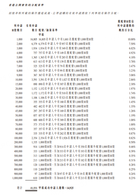 香江電器 公佈招股結果,香港公開發售接獲852.38倍認購,一手(1,000股)中籤率10%,認購20萬股始獨穩派一手。按回補機制,公開發售股份已增至3,411萬股,佔發售總數50%。國際發售錄得1.08倍認購。最終發售價2.86港元,下限定價,集資淨額1.56億港元。股份預期今日(25日)上市。