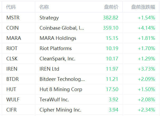 加密貨幣概念股持續走高, Coinbase Global, Inc. 漲超4%, IREN Ltd 漲超3%, Strategy 漲1.5%: