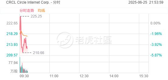 本週三(6月25日)美股盤初,“穩定幣第一股” Circle Internet Corp. 續跌超5%,兩日已累跌近20%: