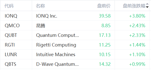 盤前異動 | 量子計算概念走高,IONQ漲近4%,昆騰、QUBT均漲超2%