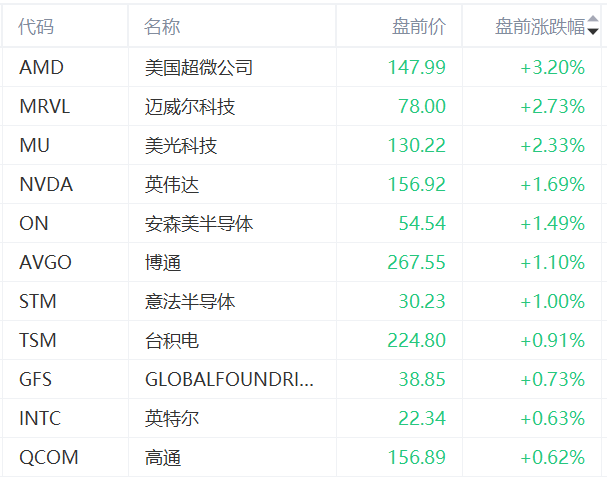 美光科技 Q3營收創歷史新高,預計Q4營收將環比增長15%,拉動半導體板塊盤前普漲,截至發稿 美國超微公司 漲超3%, 美光科技 、 邁威爾科技 漲超2%: