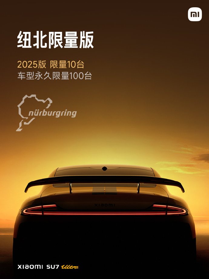 此外,小米集團CEO雷軍在發佈會上宣佈正式發佈小米SU7 Ultra紐北限量版,定價81.49萬元,車型永久限量100臺,2025版限量10臺,今晚22:00開啓預定。