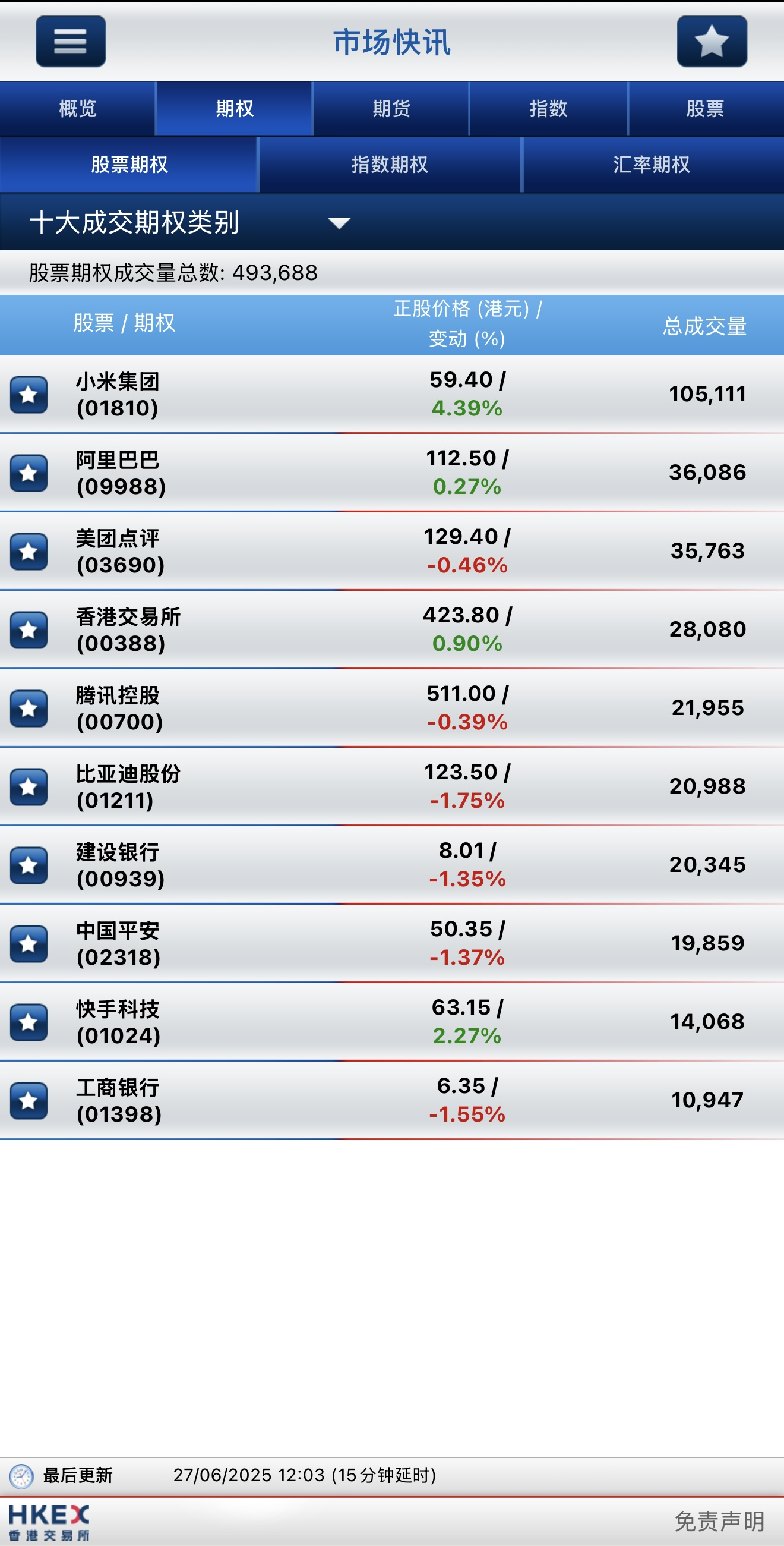 截止午間收盤,港股期權半日成交約49.3萬張,其中,小米集團成交量居前,期權成交量較昨日暴漲2.5倍達10.5萬張; 阿里巴巴所位居次席,期權成交3.6萬張;美團點評名列第三,期權成交3.5萬張。