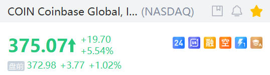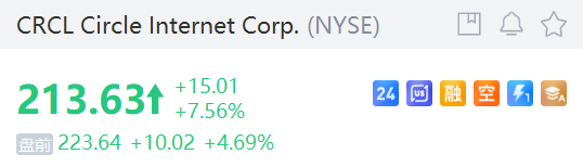 本週五(6月27日)美股盤前時段,穩定幣概念持續走高, Circle Internet Corp. 漲超4%, Coinbase Global, Inc. 漲超1%: