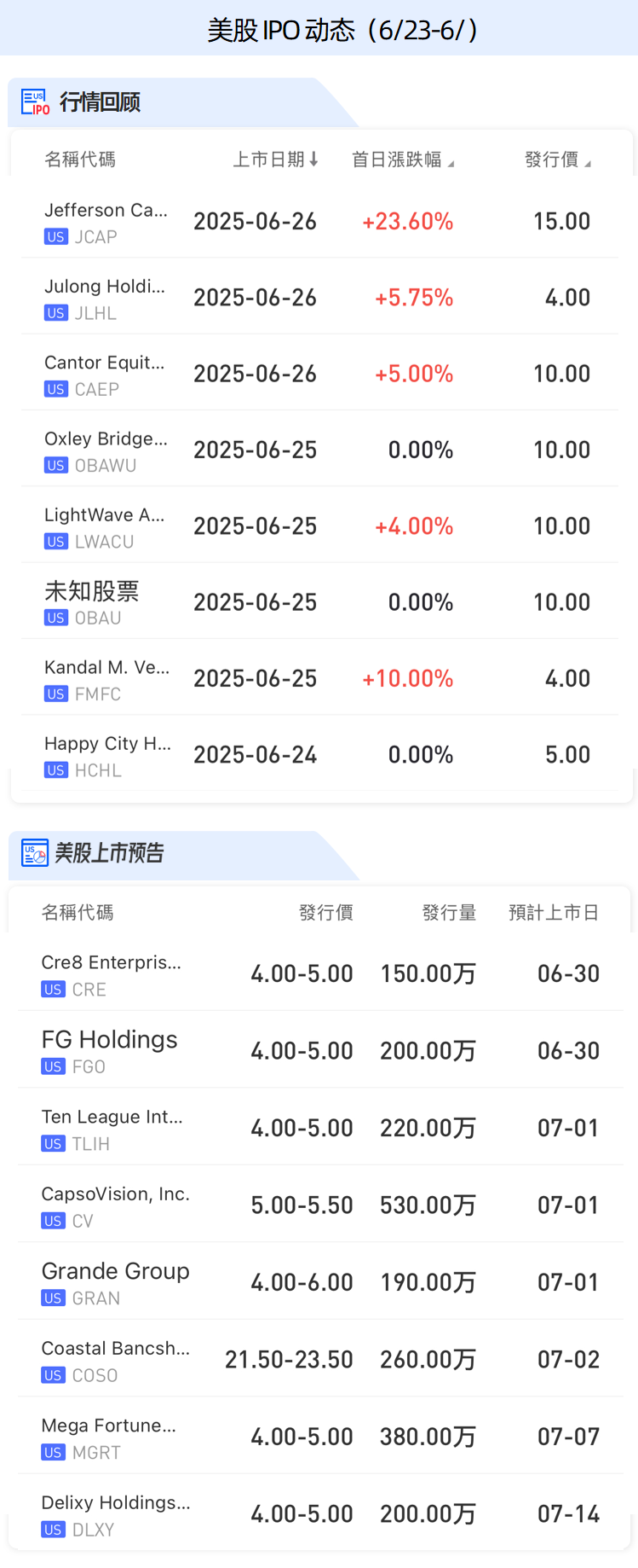 美股IPO動態