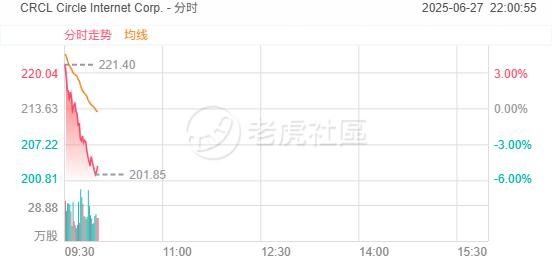 本週五(6月27日)美股盤初,穩定幣概念股普遍回調,截至發稿 Circle Internet Corp. 跌超5%,報202.6美元:
