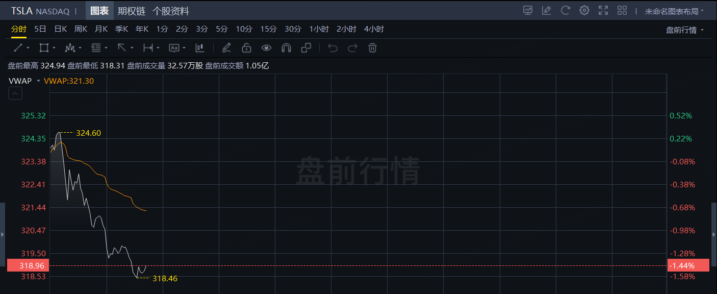 週一,特斯拉盤前持續走低,截至發稿跌幅1.45%。消息上,特斯拉在加拿大的銷售已跌至“幾乎爲零”,研究人員表示,預計在2026年開始,埃隆·馬斯克領導的電動汽車巨頭可能會報告虧損。