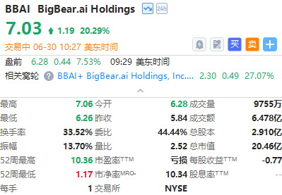 華盛資訊6月30日訊,BigBear.ai $BBAI 大漲超20%。此前,BigBear.ai與美國國防部簽訂重大合同,並在主要機場推出生物識別軟件。
