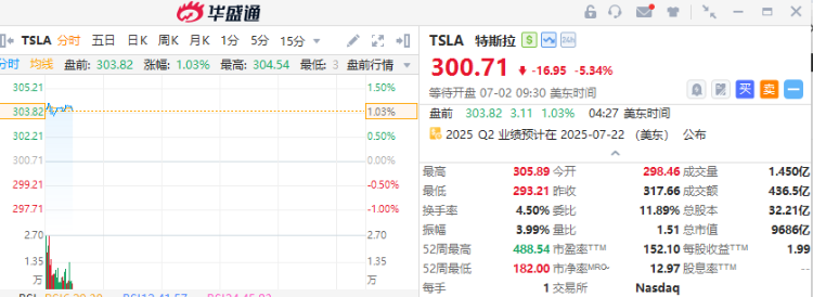 特斯拉 $TSLA 盤前反彈漲超1%,隔夜跌超5%,此前針對馬斯克近日連發帖文炮轟“大而美”稅收和支出法案,美國總統特朗普表態,稱可能會考慮“將馬斯克驅逐出境”。