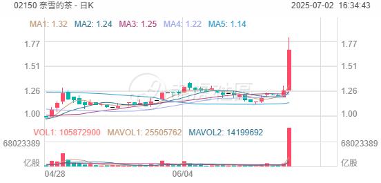 茶飲股盤中走強,奈雪的茶漲幅一度擴大至42%,最終收漲33.33%, 古茗 收漲4.31%,蜜雪集團漲3.7%,茶百道漲3.68%。
