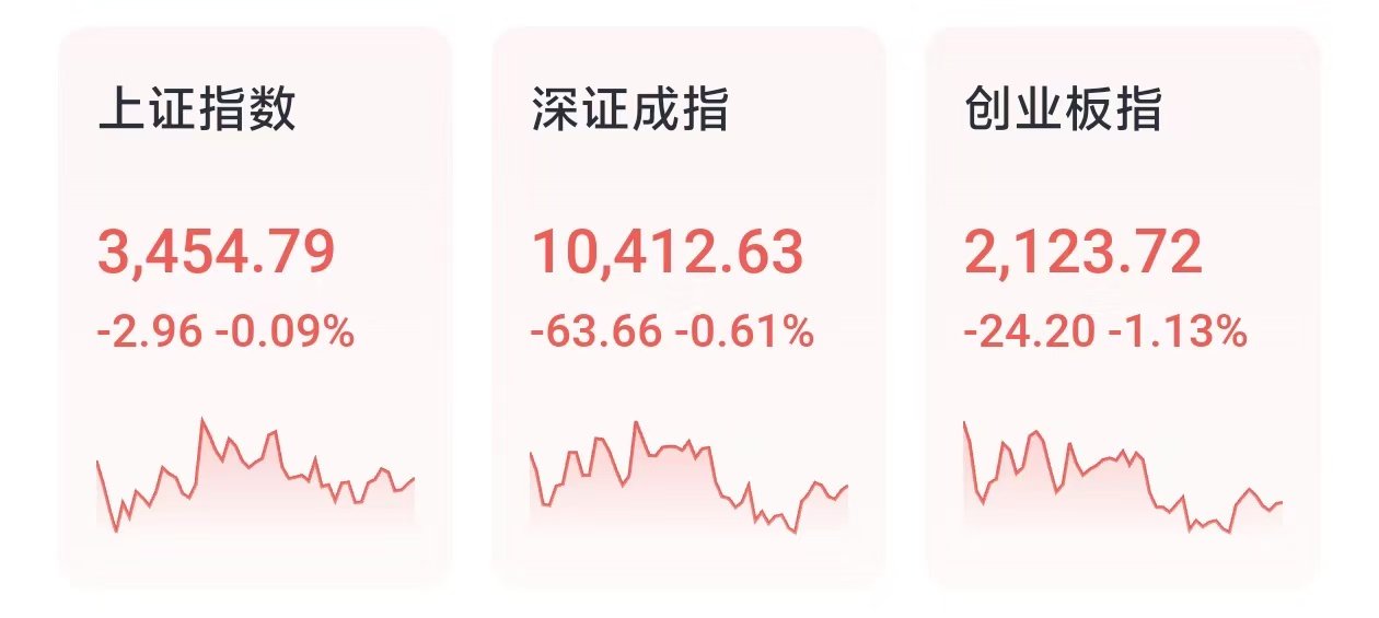 A股三大指數今日集體下跌,截至收盤,滬指跌0.09%,深成指跌0.61%,創業板指跌1.13%,北證50指數跌1.23%。