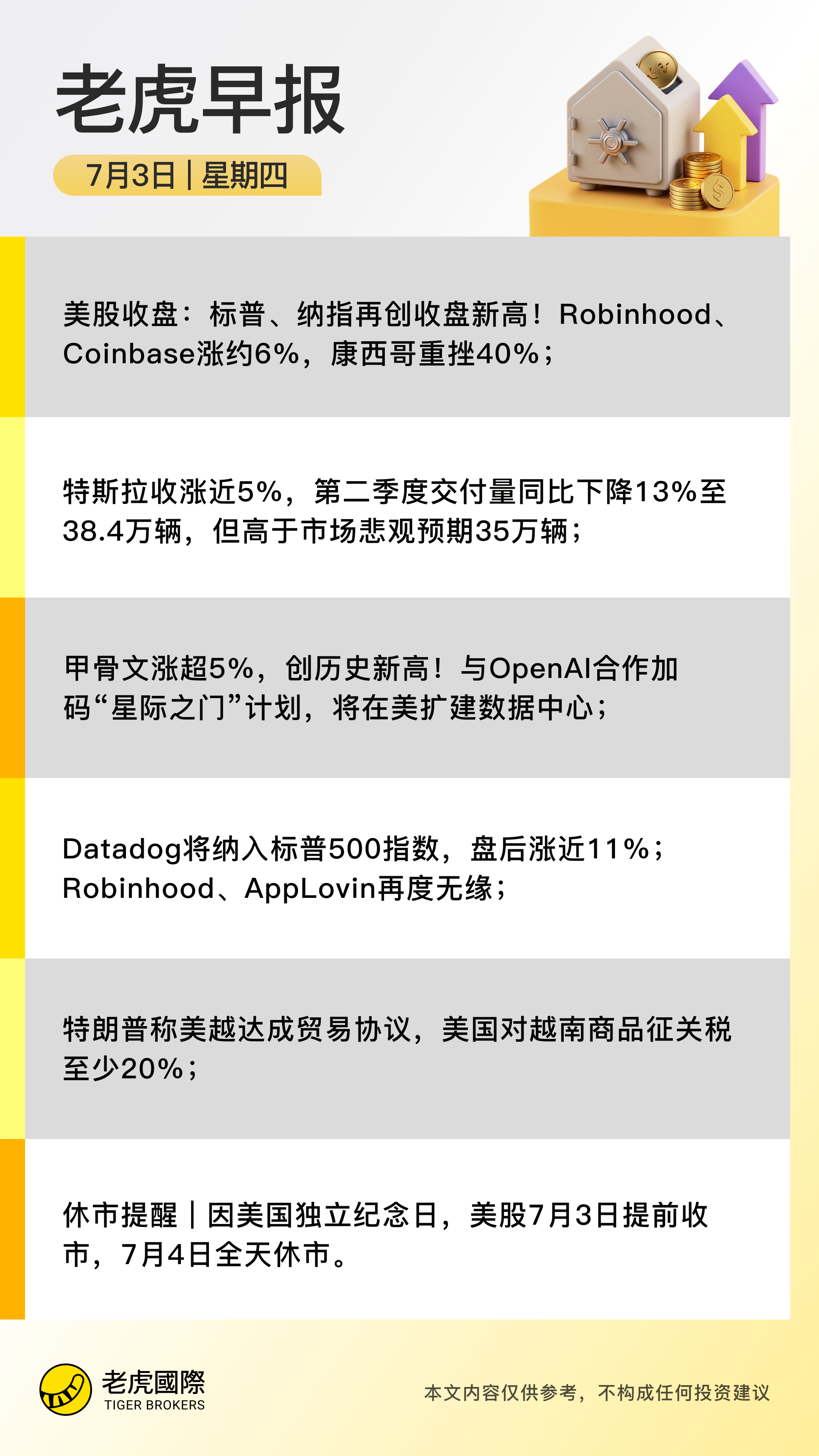 休市提醒:因美國獨立紀念日,美股7月3日提前收市,7月4日全天休市